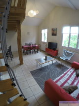 Un séjour avec une hauteur sous plafond d'environ 4m, exposé Sud Ouest avec cuisine à l'américaine, une mezzanine d'environ 10m², 3 chambres dont une avec dressing, une salle de bains avec baignoire et douche, wc. Terrasse et jardin.une petite pièce dans le fond du jardin (salle de jeux).