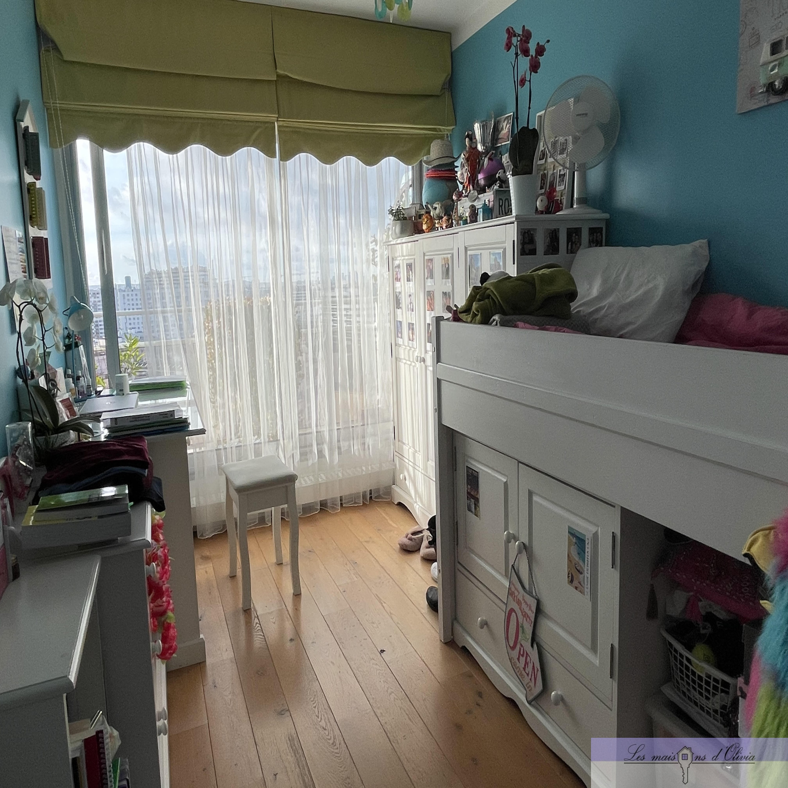 Appartement fonctionnel grâce à ses nombreux placards sans aucune perte d’espace, baies vitrées en double vitrage et volets roulants électriques, Cuisine américaine possible.